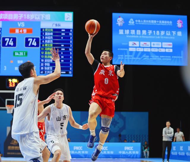 新快报讯11月18日晚,十五运会U18男篮决赛在澳门新濠影汇综艺馆举行,东道主广东队和山东队争夺冠军。经过四节激战,广东队以85比78击败对手,获得十五运会U18男篮冠军。这是广东篮球连续第三届拿到全运会男篮小年龄组金牌。