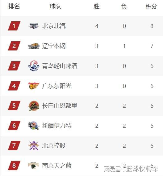 先说说北京队吧,最近几轮比赛,北京队士气正旺,他们在这一轮比赛大胜深圳队以后,球队已经收获一波四连胜,目前,北京队的战绩是4胜0负,高居积分榜第一的位置。而排在积分榜第2名的是辽宁队,他们在上一轮输给北京队以后,排名一度下滑到积分榜第4。不过,这一轮比赛面对宁波队,辽宁队最终还是顶住压力,以90-88险胜对手,避免连败的同时,战绩也提升到3胜1负,杀回积分榜第2的位置。