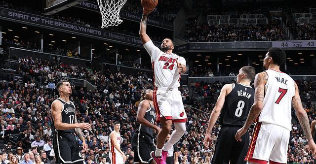 阿德巴约打铁怒抢17板,鲍威尔24分韦尔22+12+4封盖,热火擒篮网