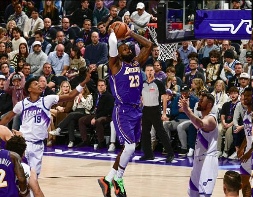 东皇45+10+14+5詹皇28+7+10 湖人胜爵士
