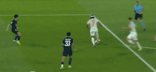 第44分钟,格纳布里脚后跟妙传,基米希插上的射门差之毫厘,巴黎门前风声鹤唳。