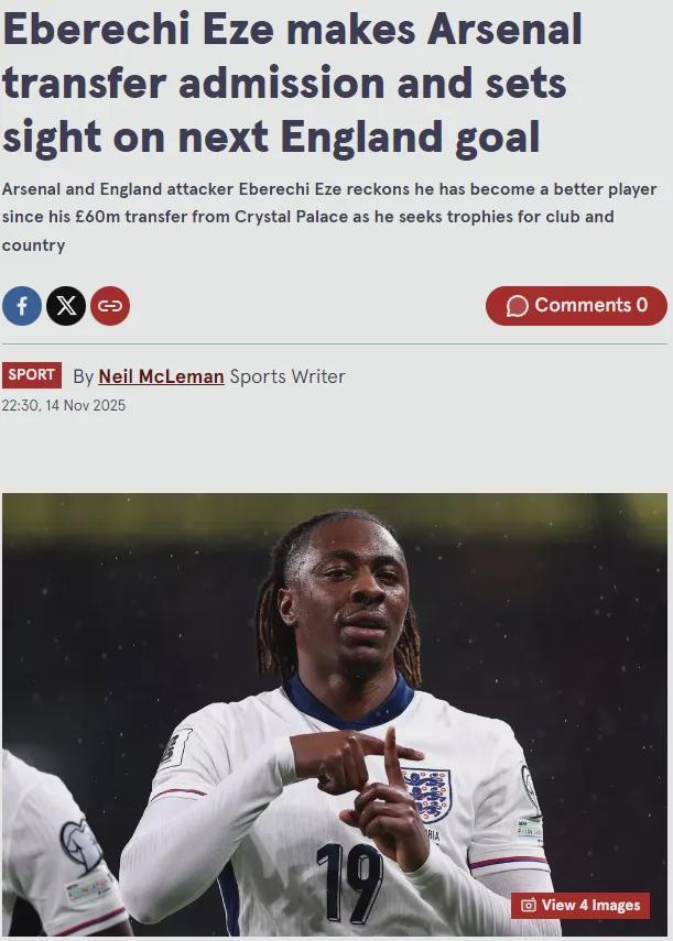 在英格兰2-0战胜塞尔维亚的赛后,进球功臣埃泽接受了采访,他表示希望明年能帮助阿森纳和英格兰拿到冠军。