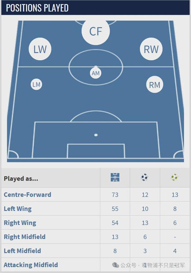 2、能胜任锋线所有位置(主打右边锋,但也能打左路和中路)。