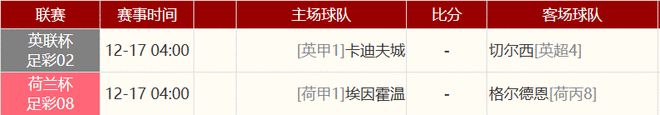 其他赛事比分: