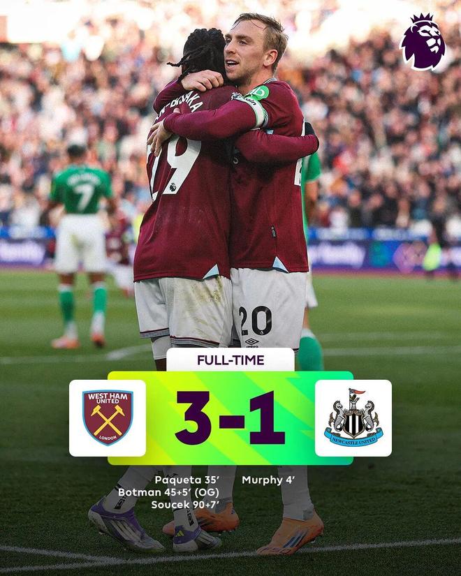 英超第10轮,西汉姆联坐镇主场迎战纽卡。客场作战的纽卡,凭借墨菲的闪击破门,在第4分钟就取得领先。