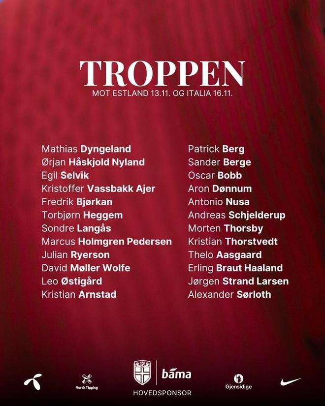挪威队11月世预赛大名单:哈兰德领衔,厄德高伤缺