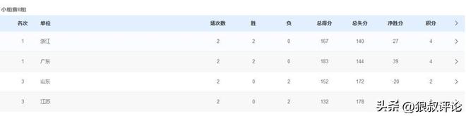 II组第三名为山东,目前是0胜2负,净胜分为-20,接下来要打江苏。