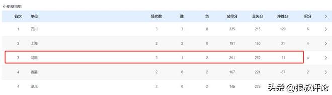 III组第三名为河南,目前是1胜2负,净胜分为-11,接下来要打香港。