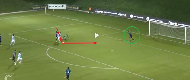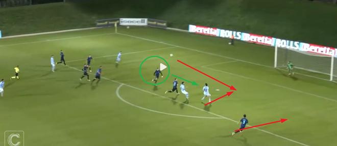 第83分钟,中路贝伦布鲁赫持球一路梅西式狂奔,面对多人包夹将球分给右路后插上的、刚刚上场首次触球的阿博尼福,后者在无人干扰的情况下传出一记让狗哥惊掉下巴的传中球,精准找到中路包抄、同样是刚刚上场的托帕洛维奇,后者头锤攻门送出国际米兰U23本场比赛的第二脚射正球门范围内的射门,并将比分成功反超!