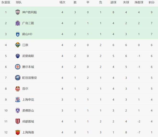 双方同积4分且少赛一轮,分列第9和第10,如果上海申花输球将被柔佛新山反超,中超三队正好沦为积分榜倒数前三名。