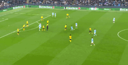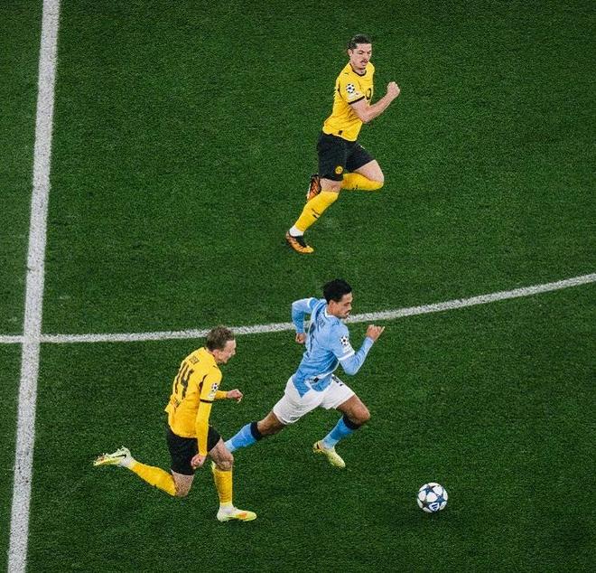 随着主裁判一声哨响,两支球队就在场上开始对攻,第9分钟福登大禁区前沿远射,被多特门将奋勇挡出,但此役非常活跃的曼城太子爷,还是在第22分钟打破了场上的平衡,自己带球推进到顶弧附近后,用一记贴地斩兜射远角,攻破大黄蜂球门,帮助曼城取得了1-0的领先。